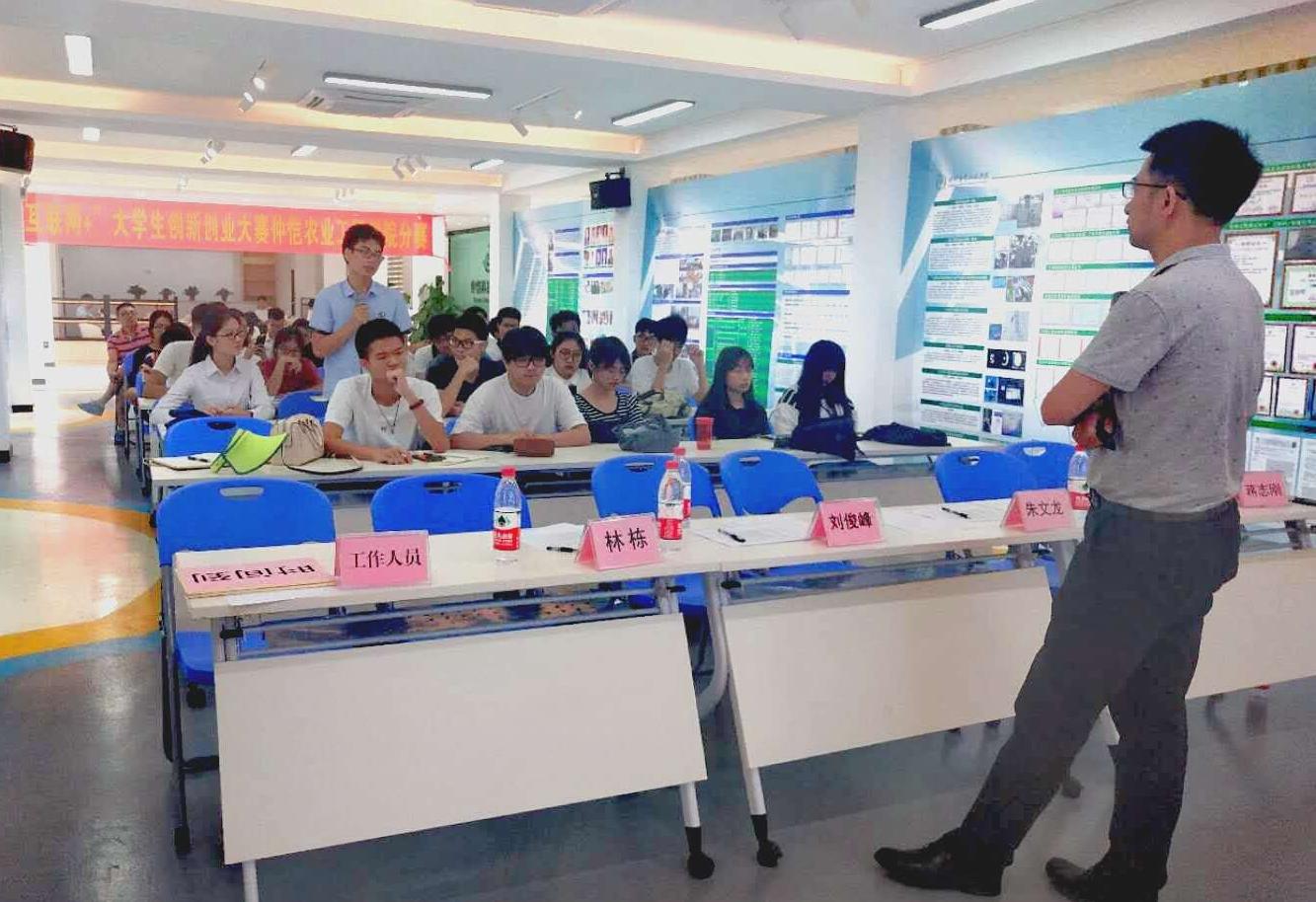 第五届中国“互联网+”大学生创新创业大赛仲恺农业工程学院分赛项目路演活动于6月21日在仲恺农业工程学院海珠校区科技孵化园一楼路演厅成功举行。本次路演活动的三位评委分别为广东省电信规划设计院信息系统研究院副院长刘俊峰,广州聚焦科技信息咨询有限公司总经理朱文龙,广州灏领投资有限公司合伙人林栋。出席本次路演活动的嘉宾有仲恺农业工程学院3044am永利集团官网院长黄江华,广州大智汇创业服务有限公司总经理唐自力,广州大智汇创业服务有限公司副总经理蒋志刚。我校“大埔红色文化陶瓷产品开发设计研究”等14个项目团队参加了此次路演。