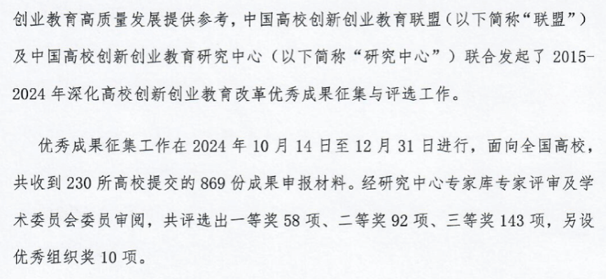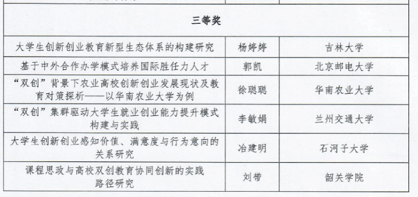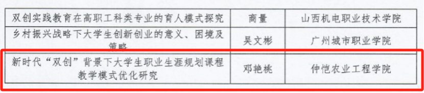 近日,中国高校创新创业教育联盟公布了关于2015-2024年深化高校创新创业教育改革优秀成果评审获奖名单,我校资源与环境学院党委副书记邓艳桃老师撰写的论文《新时代“双创”背景下大学生职业生涯规划课程教学模式优化研究》获“优秀论文”三等奖。