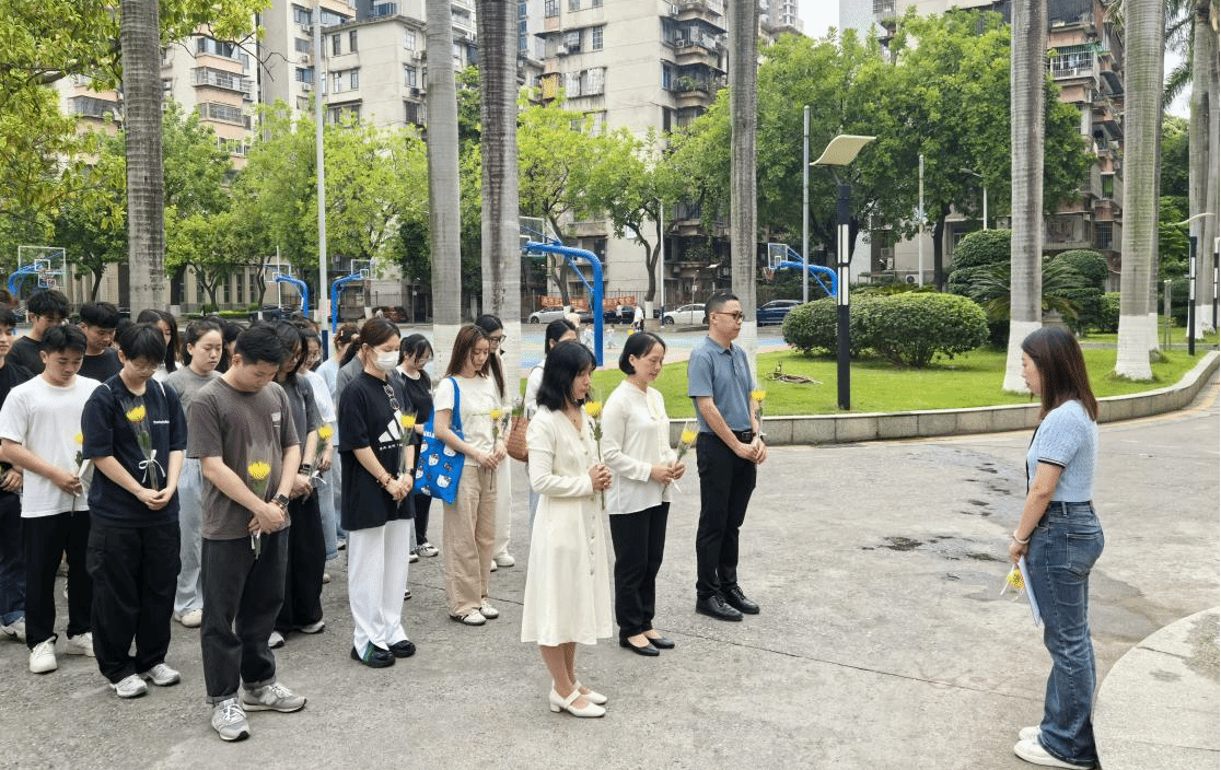 活动最后,全体师生党员在廖仲恺先生纪念碑前肃立默哀,依次敬献鲜花、缓步瞻仰,以最崇高的敬意表达对革命先驱的深切追思。移步至何香凝先生汉白玉雕像前,党员们再次鞠躬致敬,深切缅怀这位为民主革命事业奉献毕生的伟大女性,感悟其坚定的理想信念与高尚的革命品格。