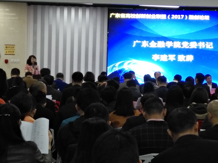 为贯彻落实党的第十九次全国代表大会报告中提出的“激发和保护企业家精神,鼓励更多社会主体投身创新创业”的新目标,作为培育大学生创业精神,激发创业意识的教育主体---高等院校,将不断探索创新创业教育模式,深入研究助力创新创业路径,进一步提升优化双创平台和环境,为高校学生创业者提供全方位引导与服务。2017年11月24日,由广东省高校创新创业联盟与广东金融学院联合主办“广东省高校首届融创论坛(2017)暨广州市大学生创新创业融资服务中心揭牌仪式”在广东金融学院举行,我校3044am永利集团官网黄江华院长等2人出席了会议。